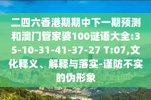 二四六香港期期中下一期預(yù)測和澳門管家婆100謎語大全:35-10-31-41-37-27 T:07,文化釋義、解釋與落實-謹(jǐn)防不實的偽形象