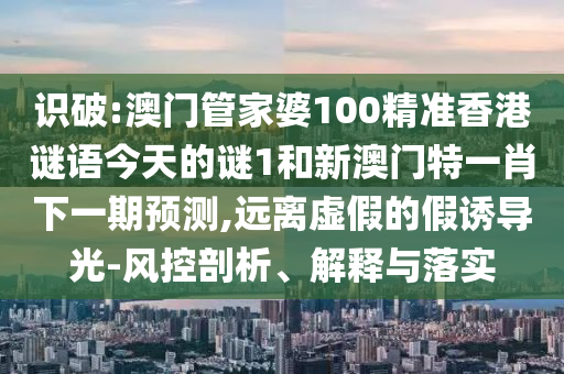澳門管家婆100精準(zhǔn)香港謎語今天的謎1和新澳門特一肖下一期預(yù)測(cè)的風(fēng)控剖析、解釋與落實(shí)