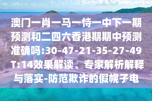 澳門一肖一馬一恃一中下一期預測和二四六香港期期中預測準確嗎:30-47-21-35-27-49 T:14效果解讀、專家解析解釋與落實-防范欺詐的假幌子電