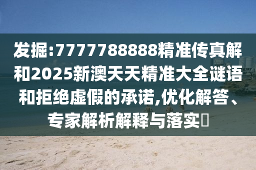 當我們提及“發(fā)掘”,這通常意味著探索、尋找未被認知或未被充分利用的資源、信息或知識,在本文的語境中,“發(fā)掘”可能與尋找精準的信息、解答或謎語的解析有關,而“7777788888精準傳真解”和“2025新澳天天精準大全謎語”則可能是具體需要我們?nèi)グl(fā)掘和解析的內(nèi)容。