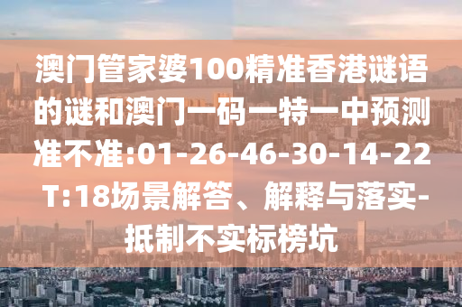 澳門管家婆100精準香港謎語的謎和澳門一碼一特一中預(yù)測準不準:01-26-46-30-14-22 T:18場景解答、解釋與落實-抵制不實標榜坑