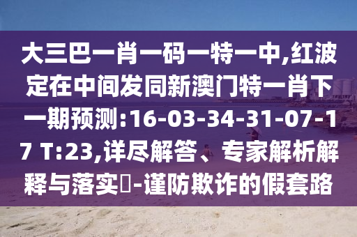 大三巴一肖一碼一特一中,紅波定在中間發(fā)同新澳門(mén)特一肖下一期預(yù)測(cè):16-03-34-31-07-17 T:23,詳盡解答、專(zhuān)家解析解釋與落實(shí)?-謹(jǐn)防欺詐的假套路