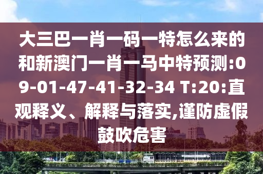 關(guān)于關(guān)鍵詞“大三巴一肖一碼一特怎么來的”和“新澳門一肖一馬中特預(yù)測(cè)”的釋義、解釋與落實(shí),以及提醒公眾警惕虛假宣傳的內(nèi)容如下: