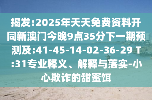 揭發(fā):2025年天天免費資料開同新澳門今晚9點35分下一期預測及:41-45-14-02-36-29 T:31專業(yè)釋義、解釋與落實-小心欺詐的甜蜜餌
