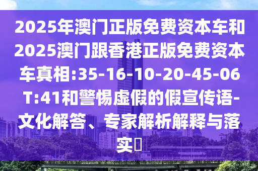 2025年澳門正版免費資本車和2025澳門跟香港正版免費資本車真相:35-16-10-20-45-06 T:41和警惕虛假的假宣傳語-文化解答、專家解析解釋與落實?