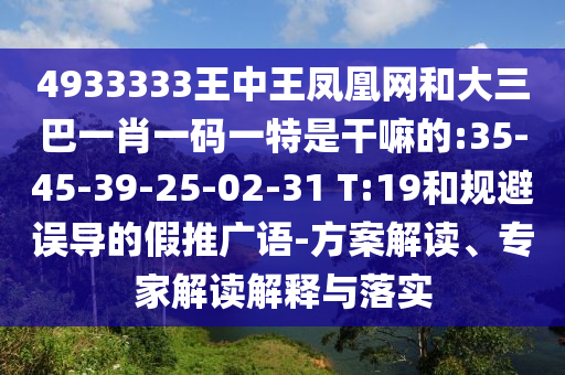 4933333王中王鳳凰網(wǎng)和大三巴一肖一碼一特是干嘛的:35-45-39-25-02-31 T:19和規(guī)避誤導(dǎo)的假推廣語-方案解讀、專家解讀解釋與落實(shí)