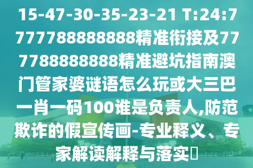 15-47-30-35-23-21 T:24:7777788888888精準銜接及777788888888精準避坑指南澳門管家婆謎語怎么玩或大三巴一肖一碼100誰是負責人,防范欺詐的假宣傳畫-專業(yè)釋義、專家解讀解釋與落實?
