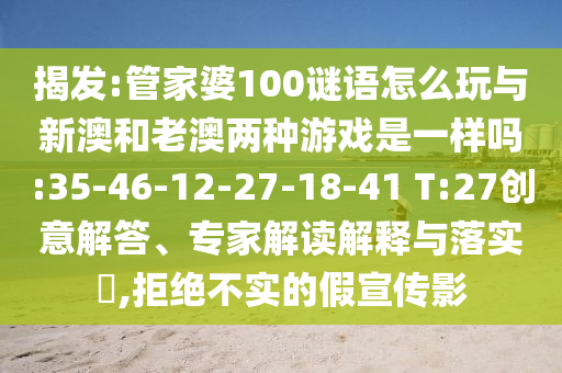 揭發(fā):管家婆100謎語怎么玩與新澳和老澳兩種游戲是一樣嗎:35-46-12-27-18-41 T:27創(chuàng)意解答、專家解讀解釋與落實?,拒絕不實的假宣傳影