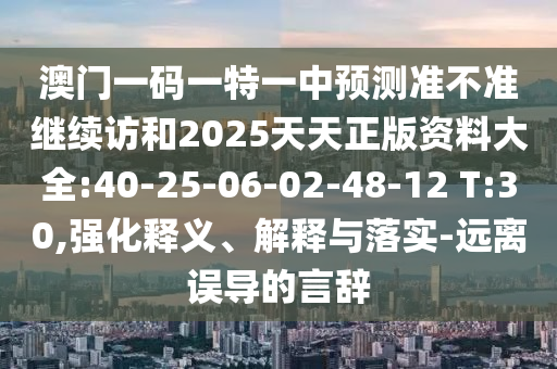 澳門一碼一特一中預(yù)測準(zhǔn)不準(zhǔn)繼續(xù)訪和2025天天正版資料大全:40-25-06-02-48-12 T:30,強(qiáng)化釋義、解釋與落實(shí)-遠(yuǎn)離誤導(dǎo)的言辭
