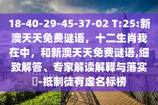 18-40-29-45-37-02 T:25:新澳天天免費謎語,十二生肖我在中,和新澳天天免費謎語:細(xì)致解答、專家解讀解釋與落實?