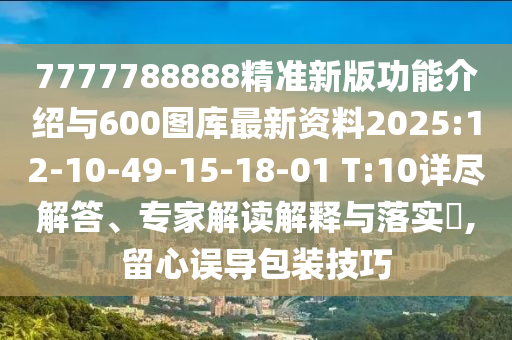 7777788888精準新版功能介紹與600圖庫最新資料2025:12-10-49-15-18-01 T:10詳盡解答、專家解讀解釋與落實?,留心誤導(dǎo)包裝技巧
