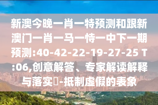 新澳今晚一肖一特預(yù)測和跟新澳門一肖一馬一恃一中下一期預(yù)測:40-42-22-19-27-25 T:06,創(chuàng)意解答、專家解讀解釋與落實(shí)?-抵制虛假的表象