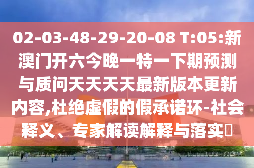 針對(duì)您提供的關(guān)鍵詞:“02-03-48-29-20-08 T:05:新澳門開六今晚一特一下期預(yù)測(cè)與質(zhì)問天天天天最新版本更新內(nèi)容的杜絕虛假的假承諾環(huán)-社會(huì)釋義、專家解讀解釋與落實(shí)”,我們可以從以下幾個(gè)方面進(jìn)行全面釋義、解釋與落實(shí),并特別提醒公眾警惕虛假宣傳。