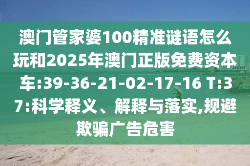澳門管家婆100精準(zhǔn)謎語怎么玩和2025年澳門正版免費(fèi)資本車:39-36-21-02-17-16 T:37:科學(xué)釋義、解釋與落實,規(guī)避欺騙廣告危害