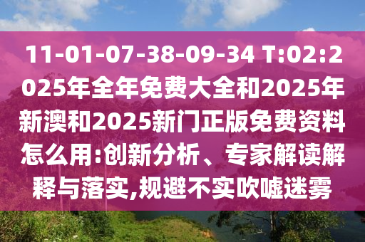 11-01-07-38-09-34 T:02:2025年全年免費大全和2025年新澳和2025新門正版免費資料怎么用:創(chuàng)新分析、專家解讀解釋與落實,規(guī)避不實吹噓迷霧