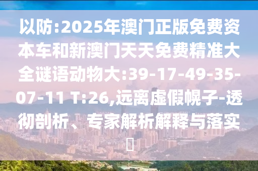 以防:2025年澳門正版免費(fèi)資本車和新澳門天天免費(fèi)精準(zhǔn)大全謎語(yǔ)動(dòng)物大:39-17-49-35-07-11 T:26”的透徹剖析、專家解析解釋與落實(shí),并警惕虛假宣傳