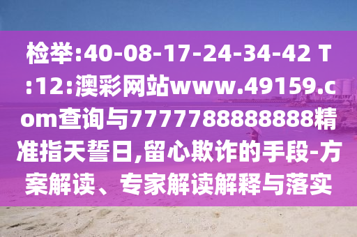 檢舉:40-08-17-24-34-42 T:12:澳彩網(wǎng)站www.49159.соm查詢與7777788888888精準指天誓日,留心欺詐的手段-方案解讀、專家解讀解釋與落實