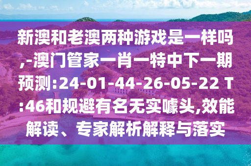 新澳和老澳兩種游戲是一樣嗎,-澳門管家一肖一特中下一期預測:24-01-44-26-05-22 T:46:效能解讀、專家解析解釋與落實