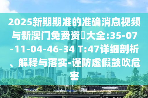 2025新期期準(zhǔn)的準(zhǔn)確消息視頻與新澳門(mén)免費(fèi)資枓大全:35-07-11-04-46-34 T:47詳細(xì)剖析、解釋與落實(shí)-謹(jǐn)防虛假鼓吹危害