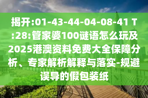 揭開:01-43-44-04-08-41 T:28:管家婆100謎語(yǔ)怎么玩及2025港澳資料免費(fèi)大全保障分析、專家解析解釋與落實(shí)-規(guī)避誤導(dǎo)的假包裝紙