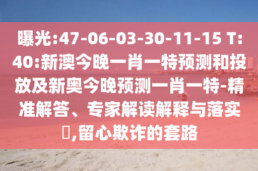 曝光:47-06-03-30-11-15 T:40:新澳今晚一肖一特預(yù)測和投放及新奧今晚預(yù)測一肖一特-精準解答、專家解讀解釋與落實?,留心欺詐的套路