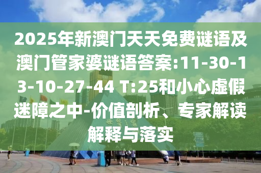 2025年新澳門天天免費謎語及澳門管家婆謎語答案:11-30-13-10-27-44 T:25和小心虛假迷障之中-價值剖析、專家解讀解釋與落實