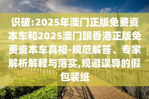 識破:2025年澳門正版免費(fèi)資本車和2025澳門跟香港正版免費(fèi)資本車真相-規(guī)范解答、專家解析解釋與落實(shí),規(guī)避誤導(dǎo)的假包裝紙