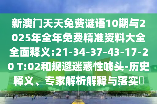 新澳門天天免費(fèi)謎語10期與2025年全年免費(fèi)精準(zhǔn)資料大全全面釋義:21-34-37-43-17-20 T:02和規(guī)避迷惑性噱頭-歷史釋義、專家解析解釋與落實(shí)?